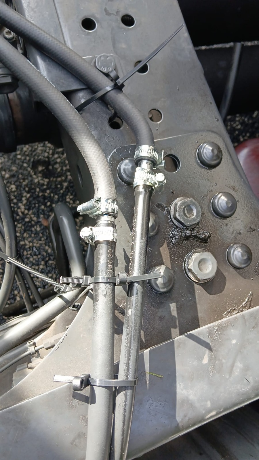 - Нарастить шланги, при необходимости разрезав шланг подкачки, и зажать соединения хомутами.