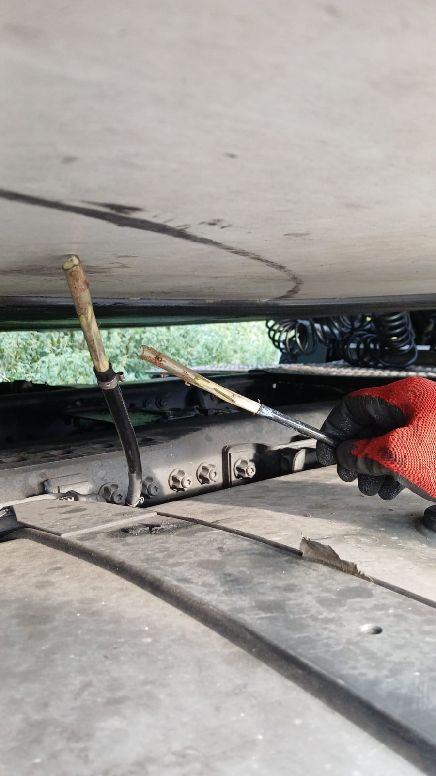 Наиболее оперативным решением будет забить отверстие деревянным чопиком. Если есть время, рекомендуется дополнительно обработать место повреждения двухкомпонентным клеем или герметиком. Чтобы замедлить утечку топлива, можно пережать или заглушить вентиляционные трубки баков. Также необходимо заглушить сообщающий шланг между баками — его легко найти: он начинается в нижней части правого бака.